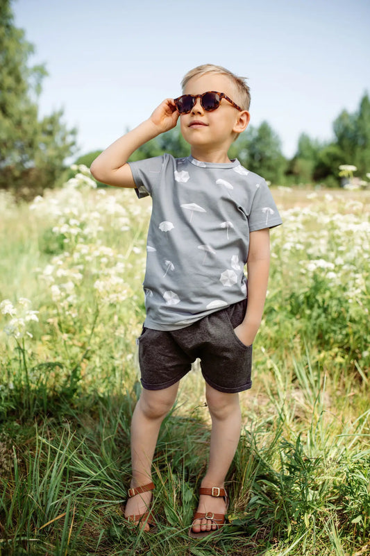 Cotton Short Sleeve Graphic Tee - Rainy Clouds